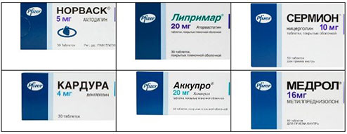 Рис. 2. Дизайн упаковок некоторых лекарственных препаратов израильской биофармацевтической компании Pfizer