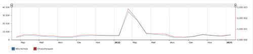 В результате интернет-анализа было установлено, что пик интереса к этой теме у пользователей сети приходится на февраль 2022 года. Запрос со словосочетанием «цифровое искусство» производился 34 618 раз, см. Рис. 2.